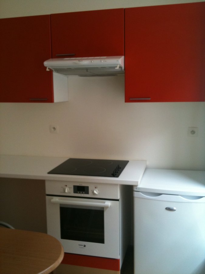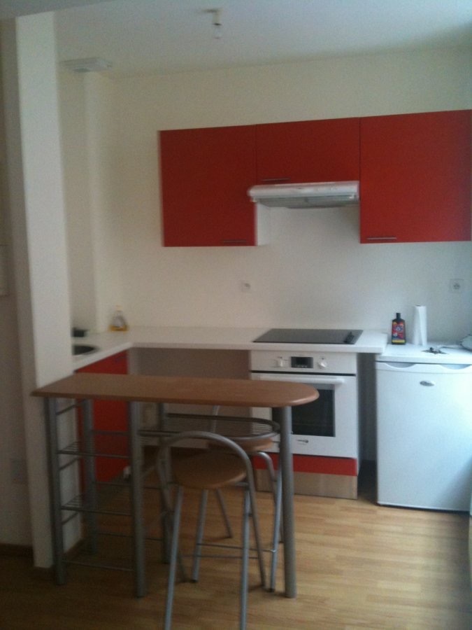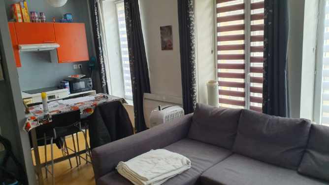 A louer appartement comprenant une entrée-une pièce principale avec cuisine entièrement équipée ouverte (plaque de cuisson, réfrigérateur hotte, meubles de rangement, ,lave-linge- mis a disposition- appartement équipé d'une table snack et 2 tabourets mis à disposition une salle de bain entièrement carrelé douche, wc, lavabo avec miroir lumineux, avec radiateur sèche serviette ,parquet flottant double vitrageChauffage individuel élect. charges +30€