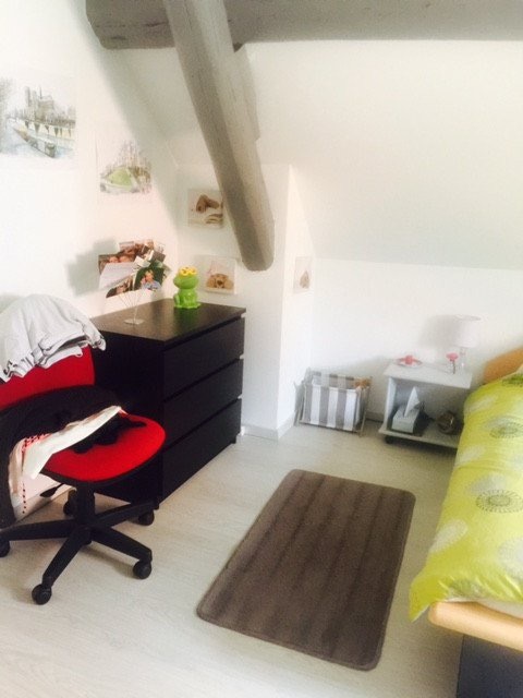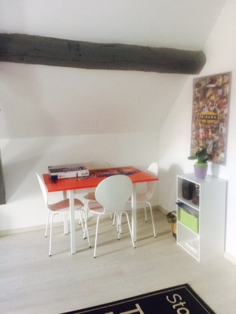 A louer beau T2 rue du Neufbourg Metz centreappartement comprenant 1 couloir,1 cuisine entièrement équipée -plaque de cuisson,réfrigérateur, lave linge, hotte, meubles de rangement, placard ), un séjour-une chambre-une salle de bain entièrement carrelé douche, wc, lavabo avec meuble vasque-radiateur + sèche serviette- Chauffage individuel élect. , placards**en comble avec poutres apparente