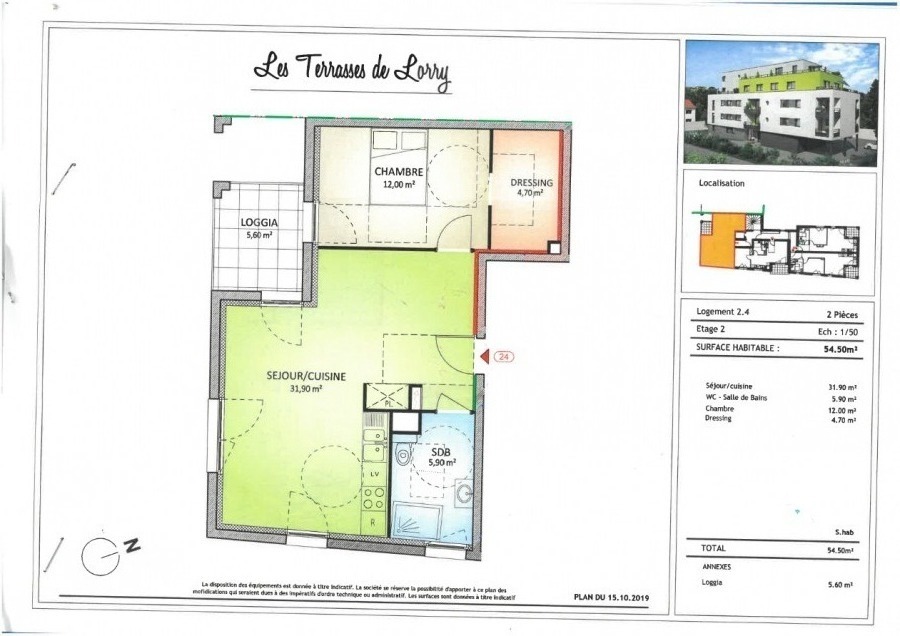 - Surface habitable : +/-54,5 m2